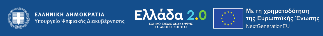 Το έργο υλοποιήθηκε στο πλαίσιο του προγράμματος «Ανάπτυξη Ψηφιακών Προϊόντων και Υπηρεσιών» του Εθνικού Σχεδίου Ανάκαμψης και Ανθεκτικότητας «Ελλάδα2.0» με τη χρηματοδότηση της Ευρωπαϊκής Ένωσης-NextGenerationEU (https://digitalsme.gov.gr). |